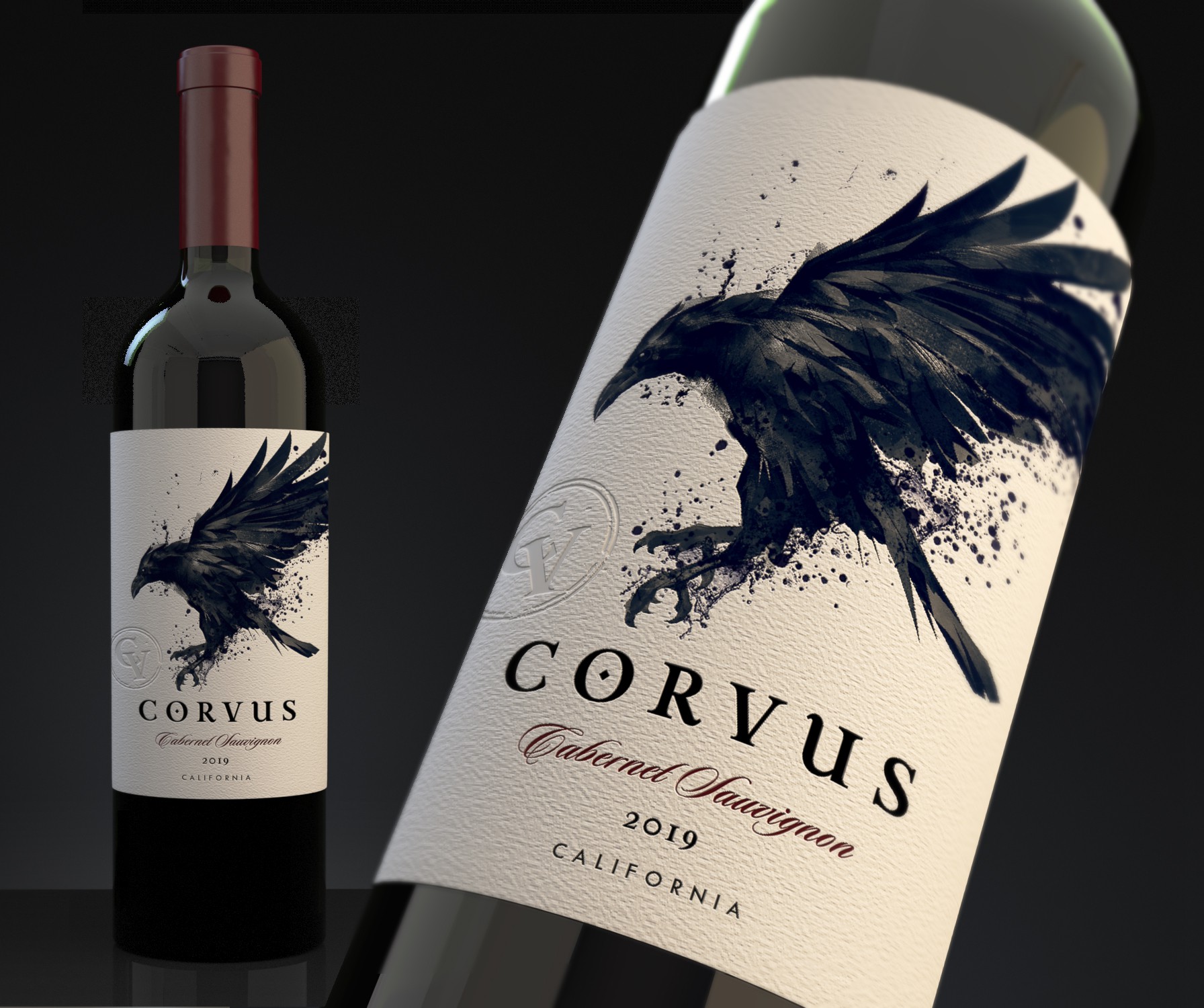 Create a powerful new wine label "Corvus"